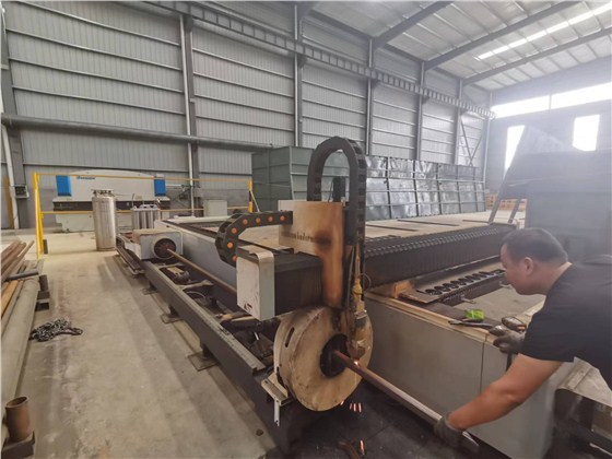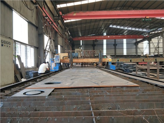 厚板火焰等离子切割下料,再转运到数控平面钻钻孔。