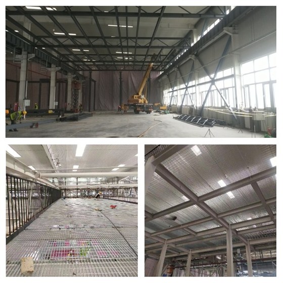天津室内实验室改造桁架钢平台项目项目在8月进入收尾阶段。工人们正在进行最后的工程施工。